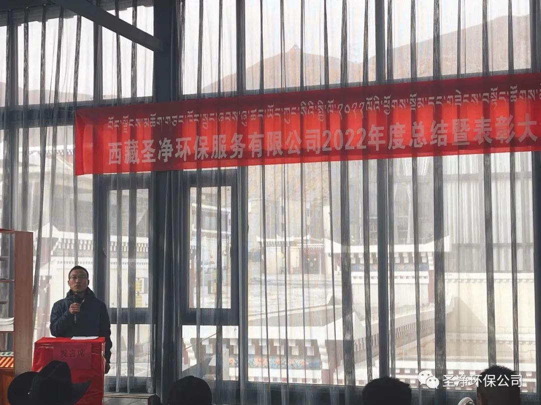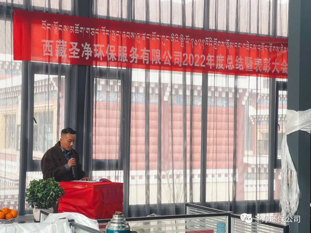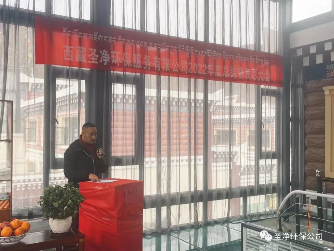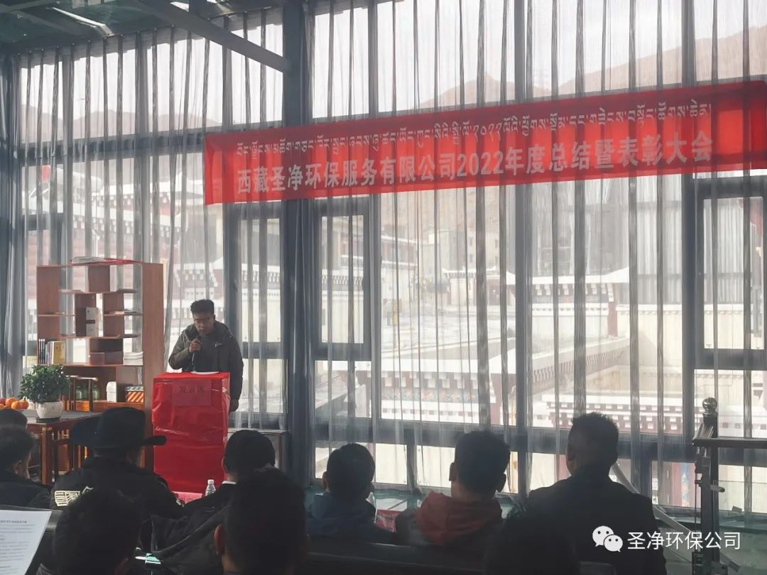2023年2月17日11:00分,西藏圣凈環(huán)保服務(wù)有限公司在總公司二樓辦公室召開2022年度總結(jié)暨表彰大會??偨?jīng)理達瓦、股東尼瑪羅桑、股東達瓦多吉、副總經(jīng)理尼瑪次仁、公司顧問王常鵬、綜合辦公室主任旦真多吉、商務(wù)部經(jīng)理兼日喀則分公司經(jīng)理朗珍江參及各部門負(fù)責(zé)人、各分公司經(jīng)理、環(huán)衛(wèi)項目部經(jīng)理、污水處理廠廠長、優(yōu)秀員工代表和總公司全體員工出席會議。