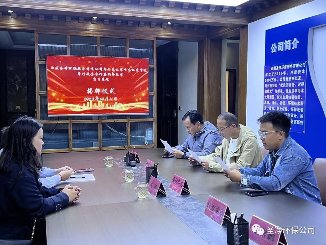 為進(jìn)一步加強(qiáng)學(xué)校與企業(yè)的合作,適應(yīng)產(chǎn)業(yè)發(fā)展的需求,共同做好畢業(yè)生的就業(yè)工作,并建立長(zhǎng)期的人力資源供需協(xié)作關(guān)系,優(yōu)化企業(yè)的人力資源管理,充分發(fā)揮各自優(yōu)勢(shì),促進(jìn)雙方事業(yè)的共同發(fā)展。2023年10月11日,西藏圣凈環(huán)保服務(wù)有限公司與西藏大學(xué)生態(tài)環(huán)境學(xué)院校企合作簽約暨教學(xué)實(shí)習(xí)基地揭牌儀式在我司會(huì)議室舉行。