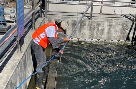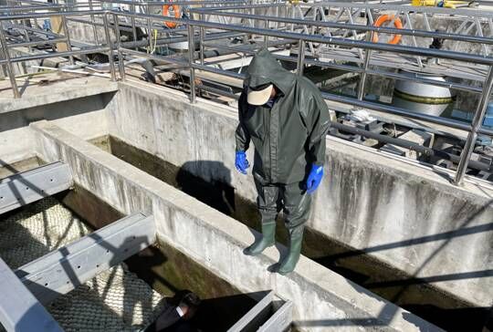 為避免池底及八字口淤泥過多影響出水水質(zhì),11月17日,吉隆鎮(zhèn)污水處理廠安排工作人員采用人工清洗的方法對廠內(nèi)的污水池進行徹底的清洗。工作人員以高壓水槍和人工洗刷等方式清除二沉池、斜管沉淀池及出水口等地方的青苔及淤泥,沖洗后的污水通過排空口排到廢水池,進行二次處理,污水池及時清洗很大程度上能避免出現(xiàn)二沉池污泥上浮、藻類生長等問題。此次清洗池子既提高了出水水質(zhì),又排除了池子漏水等潛在危險。沖洗完的污水通過調(diào)節(jié)池再一次回流到生化池進行二次生化處理,使得廠區(qū)所有污水得到了完善的處理。