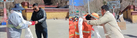 年輪流轉(zhuǎn),時光飛逝。告別成績斐然的2021年,迎來充滿希望的2022年,在這藏歷水虎年來臨的關(guān)鍵時刻,西藏圣凈環(huán)保服務(wù)有限公司展現(xiàn)新?lián)?dāng)、奮發(fā)新作為,積極發(fā)揚(yáng)企業(yè)愛心文化精神。2月15日,總公司環(huán)衛(wèi)部經(jīng)理白瑪次珠、吉隆分公司經(jīng)理貢覺次達(dá)、吉隆環(huán)衛(wèi)項目部經(jīng)理旦增晉美等一行工作組在吉隆縣副縣長旦增羅白同志和縣住建局局長邊巴同志的陪同下,深入吉隆鎮(zhèn)開展了2021年度“送溫暖、送愛心、表彰先進(jìn)”活動。