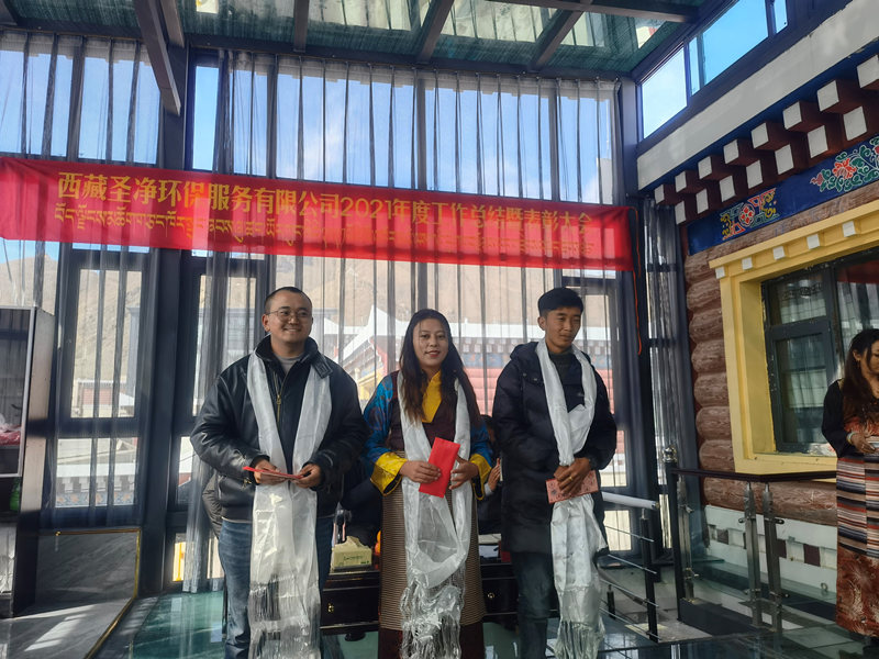 2022年2月25日11:00分,西藏圣凈環(huán)保服務(wù)有限公司在總公司二樓辦公室召開2021年度總結(jié)暨表彰大會(huì)。董事長(zhǎng)達(dá)瓦、股東拉巴次仁、副總經(jīng)理次仁、副總經(jīng)理尼瑪次仁、綜合辦公室主任旦真多吉及各地分公司負(fù)責(zé)人、各部門負(fù)責(zé)人、優(yōu)秀員工代表和總公司全體員工出席會(huì)議。