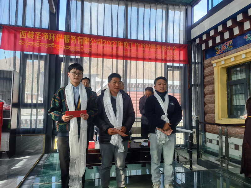 會(huì)議由副總經(jīng)理尼瑪次仁主持,共有八項(xiàng)議程。首先由公司副總經(jīng)理尼瑪次仁做2021年度工作報(bào)告,財(cái)務(wù)部主管強(qiáng)巴玉珍做2021年度財(cái)務(wù)決算及2022年度財(cái)務(wù)預(yù)算報(bào)告,各部門負(fù)責(zé)人依次做2021年度部門工作報(bào)告。接著,副總經(jīng)理尼瑪次仁宣讀《西藏圣凈環(huán)保服務(wù)有限公司2021年度優(yōu)秀團(tuán)體、勇于擔(dān)當(dāng)獎(jiǎng)、優(yōu)秀管理員、先進(jìn)個(gè)人、優(yōu)秀員工的表彰決定》,由主席臺(tái)領(lǐng)導(dǎo)為獲獎(jiǎng)部門、員工頒發(fā)獎(jiǎng)狀、獎(jiǎng)金及年終績(jī)效獎(jiǎng),優(yōu)秀管理員代表朗加做經(jīng)驗(yàn)交流。隨后,副總經(jīng)理次仁做2021年度商務(wù)工作報(bào)告。會(huì)議最后,達(dá)瓦董事長(zhǎng)回顧2021年各項(xiàng)工作,也對(duì)2022年工作進(jìn)行部署和期許,同時(shí)對(duì)各位員工的辛勤付出表示由衷的感謝,提前預(yù)祝大家藏歷水虎年快樂、闔家幸福、身體健康!